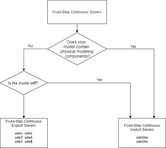 Simulink предоставляет два типа непрерывных решателей с фиксированным шагом - явные и неявные.