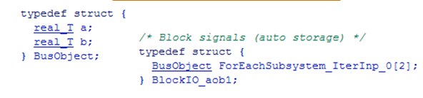 При создании кода создается массив структур C, который можно интегрировать с устаревшим кодом C, использующим массивы структур. При необходимости код для переменных шины (массивов) генерируется в следующих структурах: