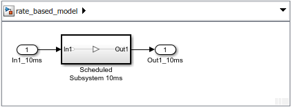 Начните с создания модели на основе скорости с запланированными подсистемами. В этом примере для параметра Sample time for the Scheduled Subsystem установлено значение 0.01. См. раздел Создание модели на основе скорости.