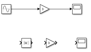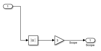 Предположим, что требуется умножить абсолютное значение выходного сигнала блока синусоидальной волны. Для этого можно добавить в модель блок Abs и другой блок усиления, используя различные методы поиска и добавления блоков.