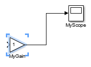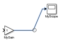 Назовите сигналы. Дважды щелкните сигнальную линию между нижним блоком усиления и блоком области и введите Scope. Метка появляется рядом с сигнальной линией.