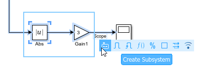 Блоки можно группировать в подсистемы и блоки меток, подсистемы и сигналы. Дополнительные сведения о подсистемах см. в разделе Создание подсистем.