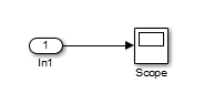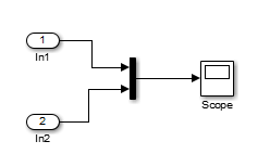In2 блок принимает один сигнал (блок использует значение по умолчанию для параметра «Размеры порта»).