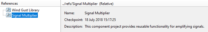 В дереве Привязки (References) выберите ссылочный проект. Если контрольная точка не существует для проекта, в представлении Подробно (Details) в поле Контрольная точка (Checkpoint) отображается None.