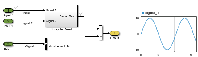 Проверьте модель с помощью сигналов из рабочей области и используйте модель в качестве ссылочной модели в более широком контексте без каких-либо изменений. Проверьте сигналы в модели без отключения входов и подключения к ним источников.