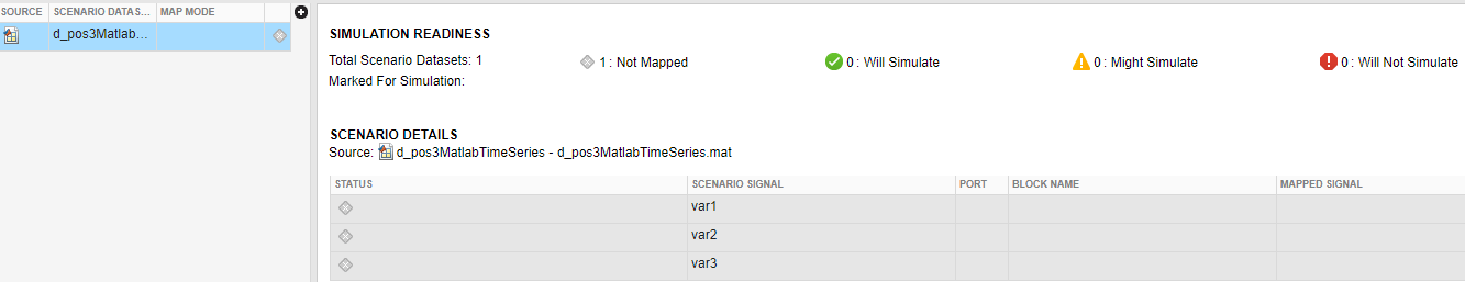 Результаты сопоставления сигналов отображаются на вкладке Набор данных сценария.