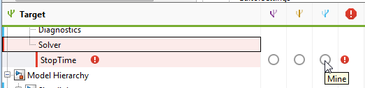 Некоторые различия необходимо объединить вручную. На панели Цель (Target) найдите значок объединения вручную в столбце Конфликты (Conflicts), в котором показано, что необходимо выполнить действие.