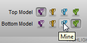 Выберите модели для отображения с помощью кнопок панели инструментов на вкладке Объединить (Merge): Верхняя модель (Top Model) или Нижняя модель (Bottom Model). Просмотрите модели, чтобы определить, что следует объединить.