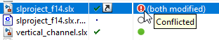 В проекте найдите конфликтующий файл модели, щелкните правой кнопкой мыши и выберите Показать конфликты (View Conflicts). Просмотр конфликтов в контекстном меню возможен только в том случае, если файл помечен как конфликтующий системой управления версиями.