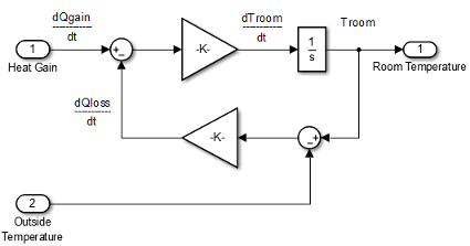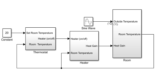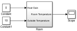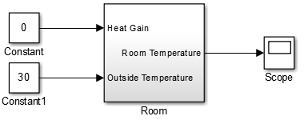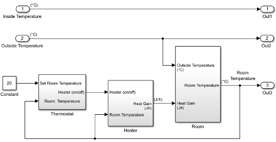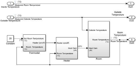 Добавьте блоки Outport, чтобы соединить внешнюю температуру и температуру в помещении с более крупной моделью или визуализировать результаты.