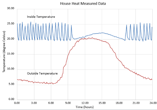 Измерьте динамические характеристики от фактической системы отопления дома. Измеренные данные с моделированием модели используются для проверки поведения и точности модели.