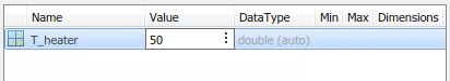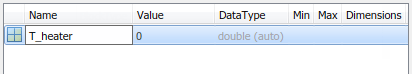 В Обозревателе моделей выберите Добавить (Add) > Переменная MATLAB (MATLAB Variable). На средней панели щелкните новую переменную Var и введите имя переменной для параметра блока. В этом примере введите T_heater.