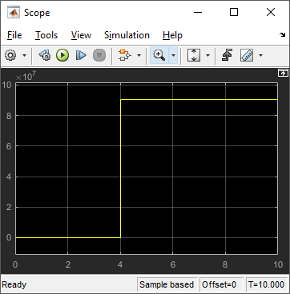 Подготовка модели нагревателя к моделированию. Настройте модель нагревателя для моделирования. Подумайте об ожидаемом поведении и о том, как можно проверить это поведение с помощью моделирования. Когда выход термостата равен 1 (on) и при постоянной комнатной температуре 25, ожидаемый выход от коэффициента усиления равен (50 - 25) x 3600 × 1005,3 = 9,05 × 107. Проверьте эти выходные данные, запустив модель со следующими входными данными: