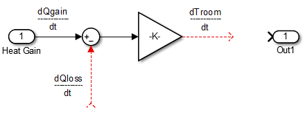 Чтобы смоделировать подсистему нагревателя, смоделируйте уравнение скорости тепловыделения с помощью блоков Simulink: