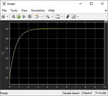Заменить блок Inport In2 с блоком Constant и задайте для параметра Constant значение 20. Блок Constant устанавливает температуру термостата.
