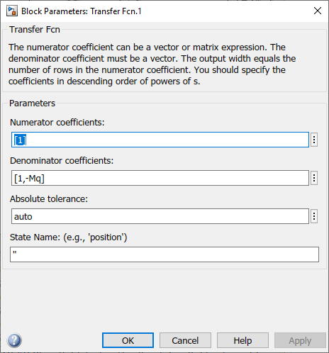 Скопируйте информацию о параметрах из диалогового окна Блок передачи Fcn.1 в диалоговое окно Блок дискретизированной передачи Fcn.