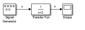 Уравнение, смоделированное в этом примере, также может быть выражено как передаточная функция. Модель использует блок Transfer Fcn, который принимает u как вход и выводит x. Таким образом, блок реализует x/u. Если заменить sx на x 'в приведенном выше уравнении, вы получите