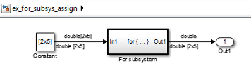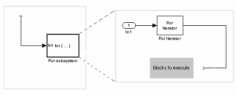 В этом примере Simulink выполняет содержимое подсистемы For многократно на каждом временном шаге. На входе в блок «Для итератора» указывается количество итераций. Для каждой итерации for loop, Simulink вызывает методы обновления и вывода всех блоков в подсистеме For в том же порядке, в котором она вызывает методы, если они находятся в неитерируемой атомной подсистеме.