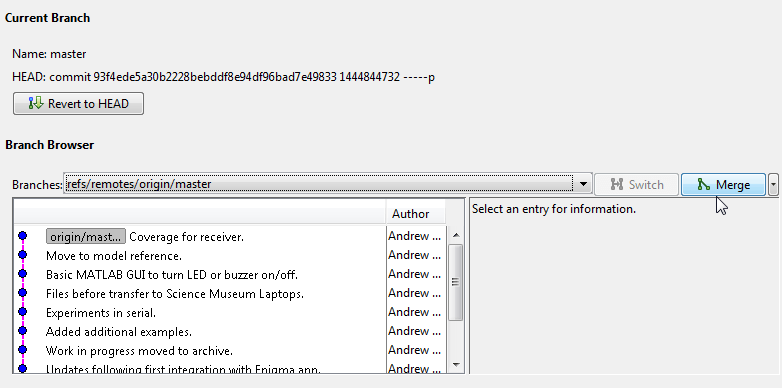 Щелкните Объединить (Merge). Это позволяет объединить изменения исходной ветви в главную ветвь в изолированной программной среде.