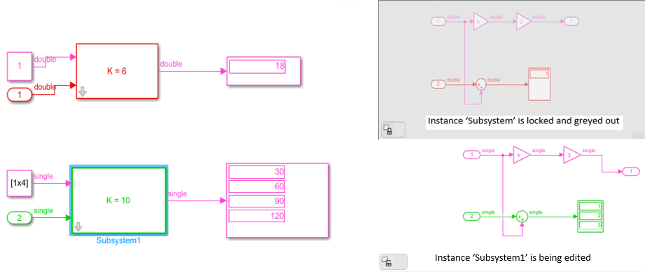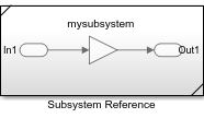 Ссылка на подсистему позволяет сохранять содержимое подсистемы в отдельном SLX-файле и ссылаться на него с помощью блока ссылки на подсистему. Можно создать несколько экземпляров, ссылающихся на один и тот же файл подсистемы. При редактировании любого экземпляра ссылочной подсистемы изменения сохраняются в отдельном SLX-файле, в котором хранится подсистема, и синхронизируются все ссылочные экземпляры этого файла.