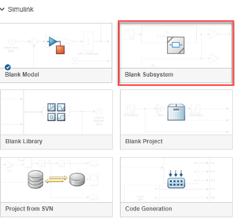 На начальной странице в группе продуктов Simulink щелкните Пустая подсистема.