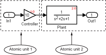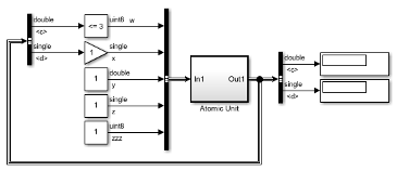 Если для атомной подсистемы включен параметр Минимизировать вхождения алгебраического цикла, Simulink делит подсистему на две атомарные единицы.