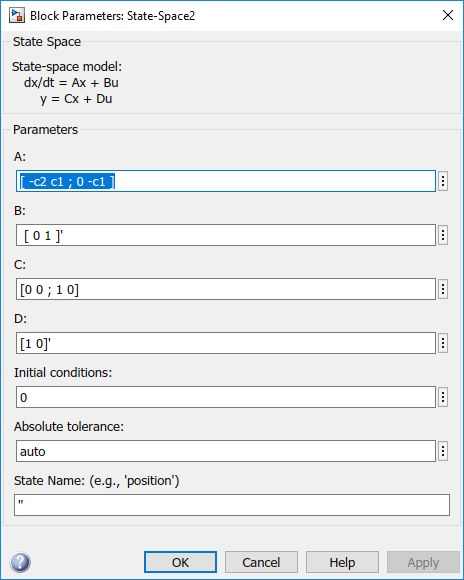 Выходные данные блока State-Space представляют собой вектор, содержащий q1 и h2.