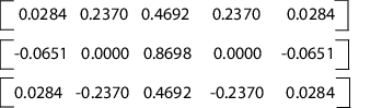 Дважды щелкните по блоку «Для каждой подсистемы» и введите матрицу коэффициентов фильтра, имеющую одну строку коэффициентов фильтра для каждого входного сигнала. Например, введите [0.0284 0.2370 0.4692 0.2370 0.0284; -0.0651 0 0.8698 0 -0.0651; 0.0284 -0.2370 0.4692 -0.2370 0.0284] для реализации различных фильтров четвертого порядка для каждого входного сигнала.