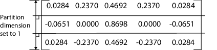 На вкладке «Раздел параметров» установите флажок рядом с параметром FilterCoeffs, чтобы включить секционирование этого параметра. Параметры Ширина раздела (Partition Width) и Размер раздела (Partition Dimension) должны иметь значение по умолчанию 1.
