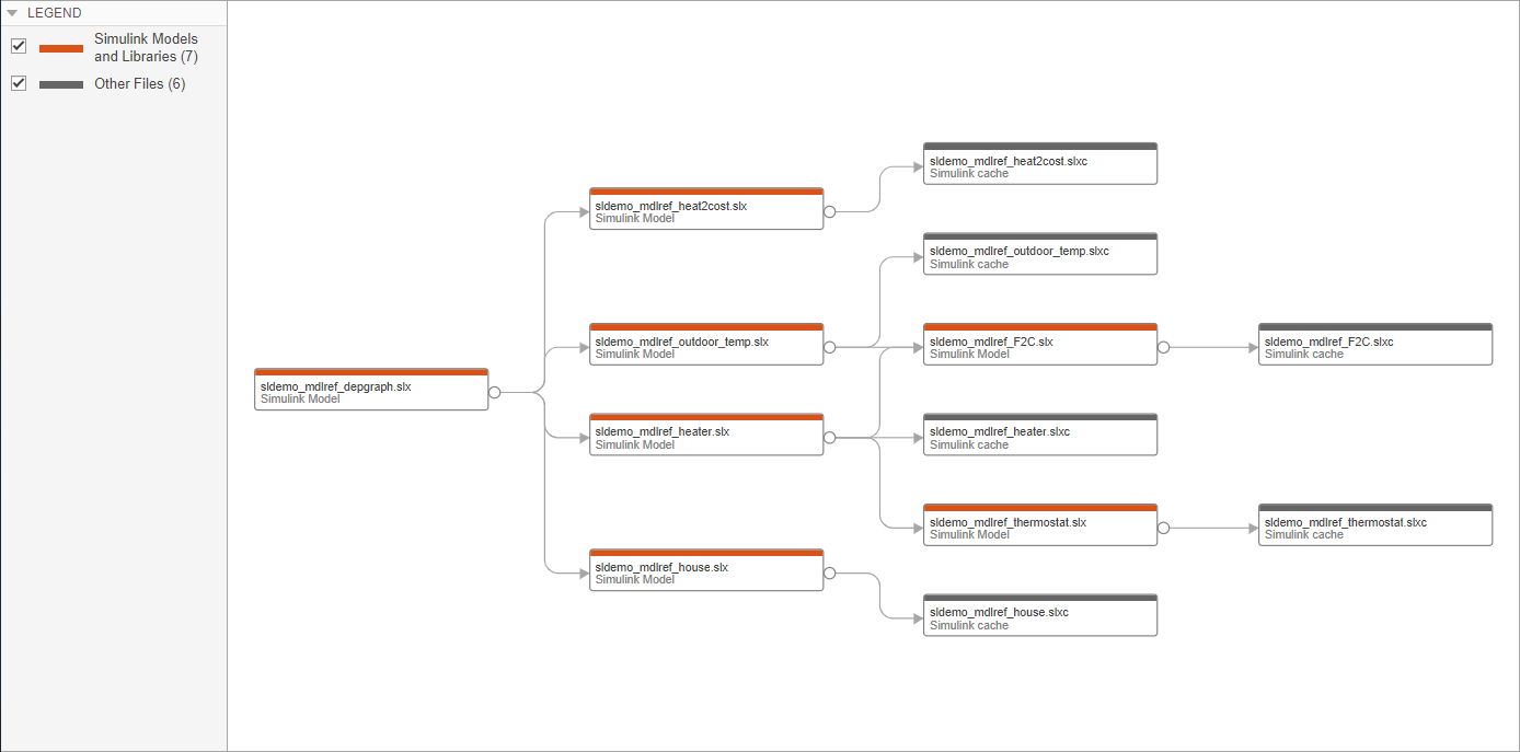 Чтобы просмотреть зависимости файлов кэша Simulink в иерархии модели, можно выбрать Анализатор зависимостей на панели Представления соответствующего проекта.