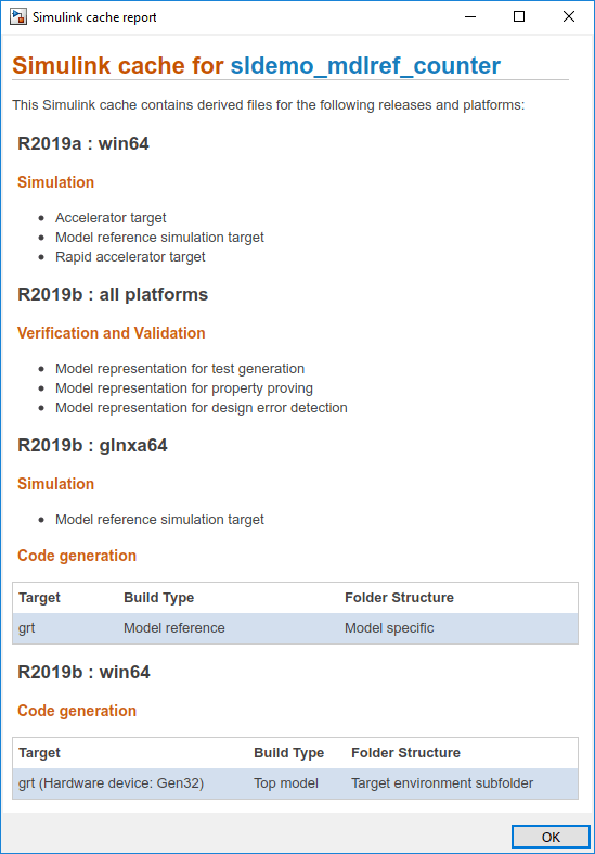 Файлы кэша Simulink накапливают артефакты построения для нескольких платформ и выпусков Simulink.