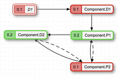 Задержка - указывает, что назначение выполняется до источника. Когда адресат работает перед источником, вводится задержка планирования. Соединение задержки представляет собой пунктирную линию.