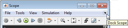 Окно Scope расположено над командным окном на рабочем столе MATLAB ®.