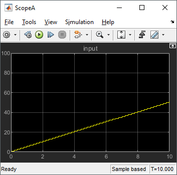 При повторном запуске моделирования с помощью кнопки запуска в области видимости данные визуализируются только так, как если бы ссылочная модель была открыта изолированно. Элементы управления воспроизведением в блоках области и средствах просмотра моделируют модель, содержащую этот блок или средство просмотра. В этом случае вход ссылочной модели без верхней модели равен нулю за все время.