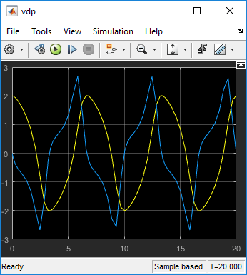 vdp scopeConfig = get_param('vdp/Scope','ScopeConfiguration'); scopeConfig.DataLogging = true; scopeConfig.DataLoggingSaveFormat = 'Dataset'; out = sim('vdp');
