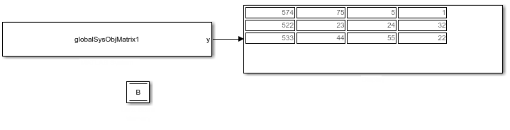 endДважды щелкните блок MATLAB System и свяжите globalSysObjMatrix1 Системный объект с блоком.