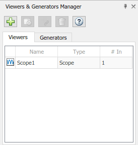 Откройте Диспетчер объектов просмотра и генераторов. На вкладке «Моделирование панели инструментов Simulink» разверните коллекцию «Подготовка» и выберите «Диспетчер Viewers».
