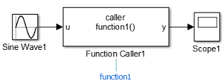 Блок вызова функции - вызов функции, определенной в Simulink или экспортированной из Stateflow. См. раздел Описание блока вызывающего абонента функции.