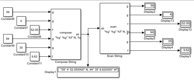 В этом примере показано, как анализировать текстовые сообщения в формате NMEA GPS с использованием строковых блоков Simulink ®.