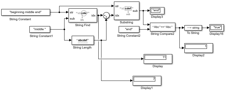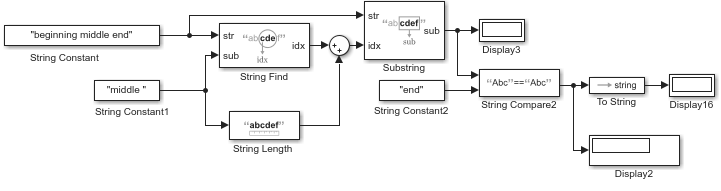 В этом примере показано базовое управление строками с использованием блоков строк Simulink.