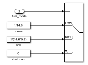 Вместо удаления всех экземпляров перечисляемых констант можно использовать строки в сочетании с перечисляемыми константами. Это позволяет постепенно переносить модель для использования строк. В sldemo_fuelsys/fuel_rate_control/fuel_calc/feedforward_fuel_rateблок многопортового коммутатора принимает четыре перечисленных входных сигнала данных.