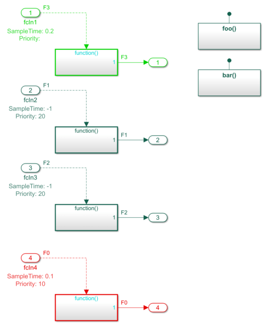 Если блок Model ссылается на модель, которая имеет порты инициализации, сброса или завершения, инициаторы функциональных вызовов, подключенные к этим портам, имеют более высокий приоритет, чем другие порты ввода функциональных вызовов. Например, модели export-function, модели на основе скорости и модели JMAAB-B могут иметь другие входные порты function-call. Simulink сортирует инициаторы вызовов функций в следующем порядке: