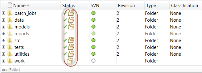 В папках на пути проекта отображается значок пути проекта в столбце «Статус».