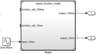 Тестовая модель Simulink используется только для моделирования. После тестирования моделирования создайте код из модели export-function, а затем интегрируйте экспортированный код функции с планировщиком с внешним кодированием.