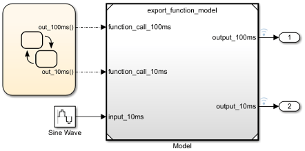 Сведения об открытии завершенной тестовой модели см. в разделе ex_export_function_test_model_with_stateflow_chart.