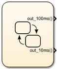 Добавление событий вызова функции с портами вывода в диаграмму. В меню выберите Добавить > Событие. В поле «Имя» введите out_100ms. В списке «Область» выберите Output to Simulink. Повторите шаг для создания события function-call и выходного порта для out_10ms.