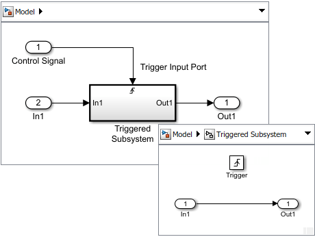 В отличие от блока Enabled Subsystem, блок Triggered Subsystem всегда сохраняет свои выходы на уровне последнего значения между триггерами. Кроме того, запускаемые подсистемы не могут сбрасывать состояния блоков при выполнении; состояния любого дискретного блока удерживаются между триггерами.