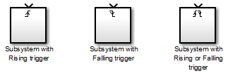 На блоках Триггер и Подсистема появляются различные символы для обозначения восходящих и падающих триггеров.