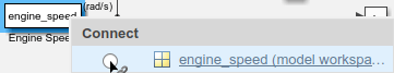 Нажмите кнопку опции рядом с engine_speed в таблице. Затем для выхода из режима подключения нажмите кнопку «Выход» в правом верхнем углу холста модели.
