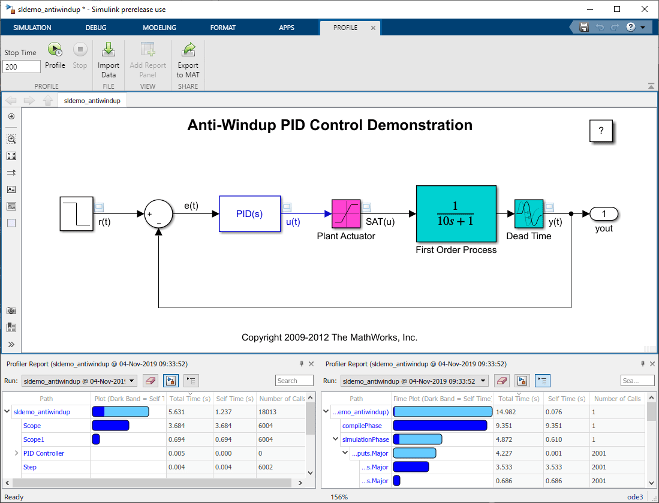Профилировщик Simulink ® отображает производительность компонентов модели и их фазы моделирования. Каждая строка панели Отчет профилировщика (Profiler Report) содержит следующую информацию.